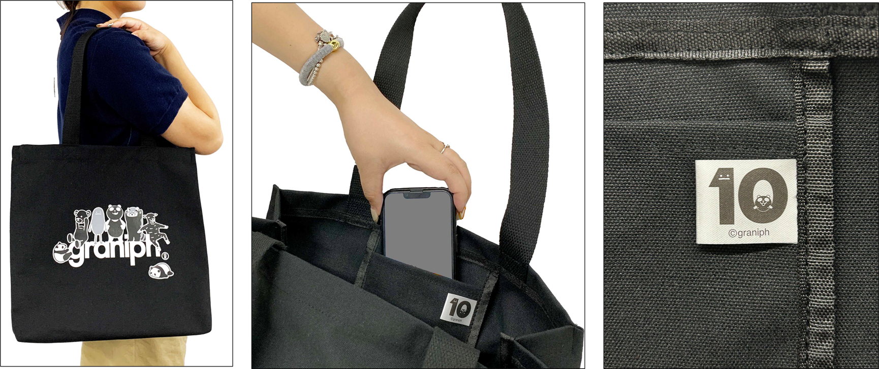 「イオン ブラックフライデーセール」が今年で10周年を迎えることを記念し、グラニフの人気オリジナルキャラクターたちが集結。キャラクターたちがデザインされた買い物やお出かけに使いやすい、色やサイズ感にこだわったトートバッグです。