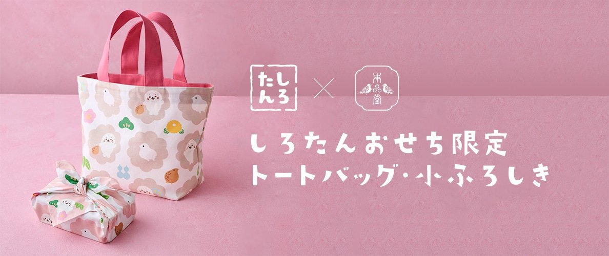 ご好評につき、今年も限定ノベルティーをご用意しました。本おせちをご購入のお客さまにもれなくオリジナルグッズをプレゼントします。東京・浅草にある人気の型染め工房「本品堂(ポンピン堂)」とコラボレーションしたトートバッグとセットで使える小風呂敷です。『しろたん』の魅力が詰まった特別なおせちで、ぜひ楽しいお正月をお迎えください。
