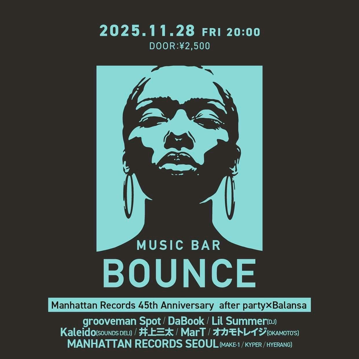 Manhattan Records、BOUNCE、そして韓国・釜山の人気ブランドBalansaによる共同開催で、grooveman Spot、Lil Summer(DJ)、DaBook、井上三太、オカモトレイジ(OKAMOTO'S)らが出演します。