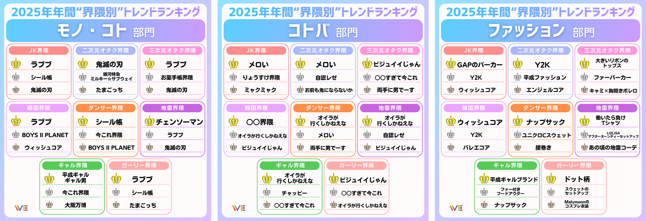 「2025年年間Z世代が選ぶ!"界隈別"トレンドランキング」→https://labo.wego.jp/2025-trendranking/