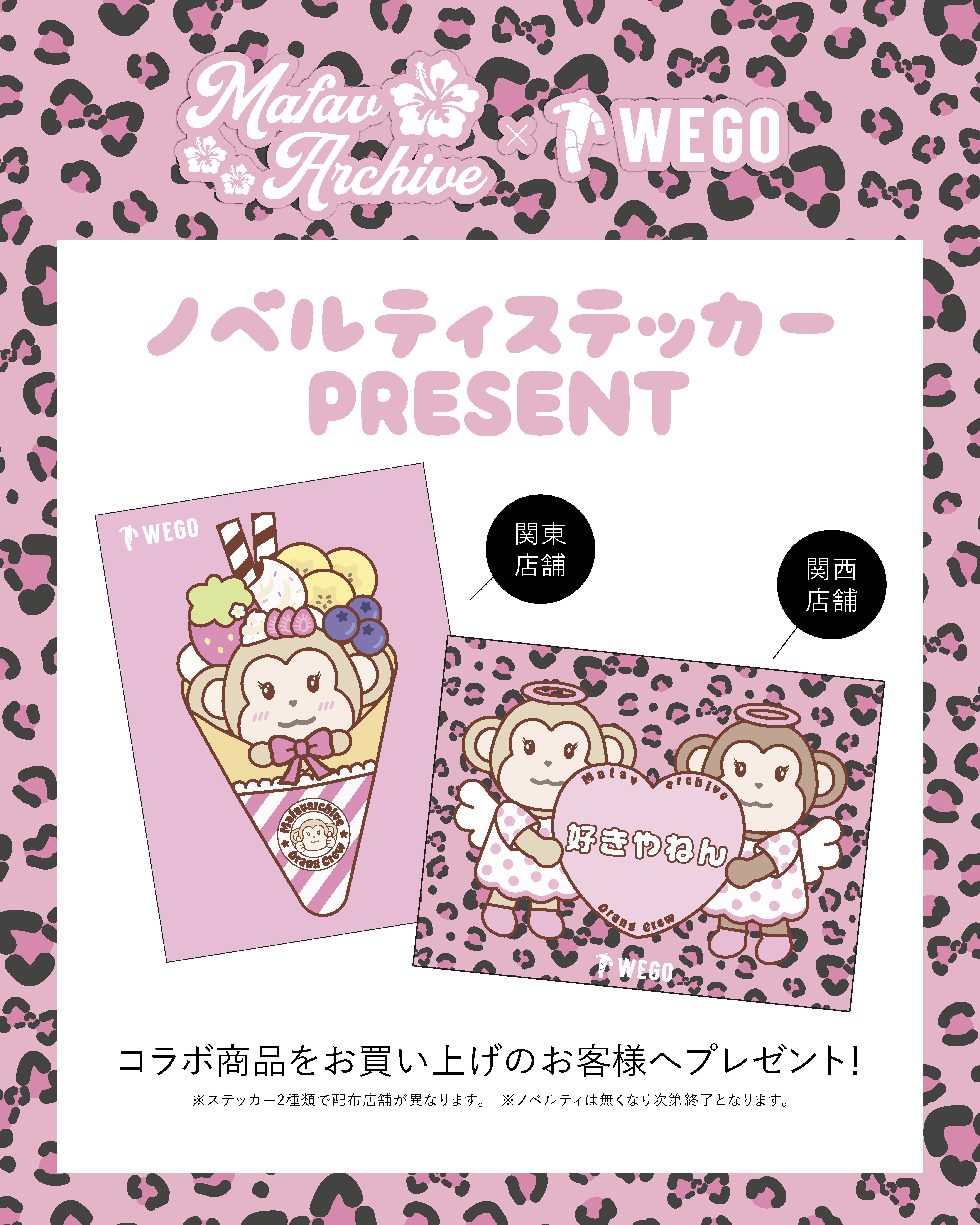MAFAVARCHIVE×WEGOのコラボアイテム取扱店舗にて、コラボ商品をお買い上げのお客様へノベルティステッカーをプレゼント!