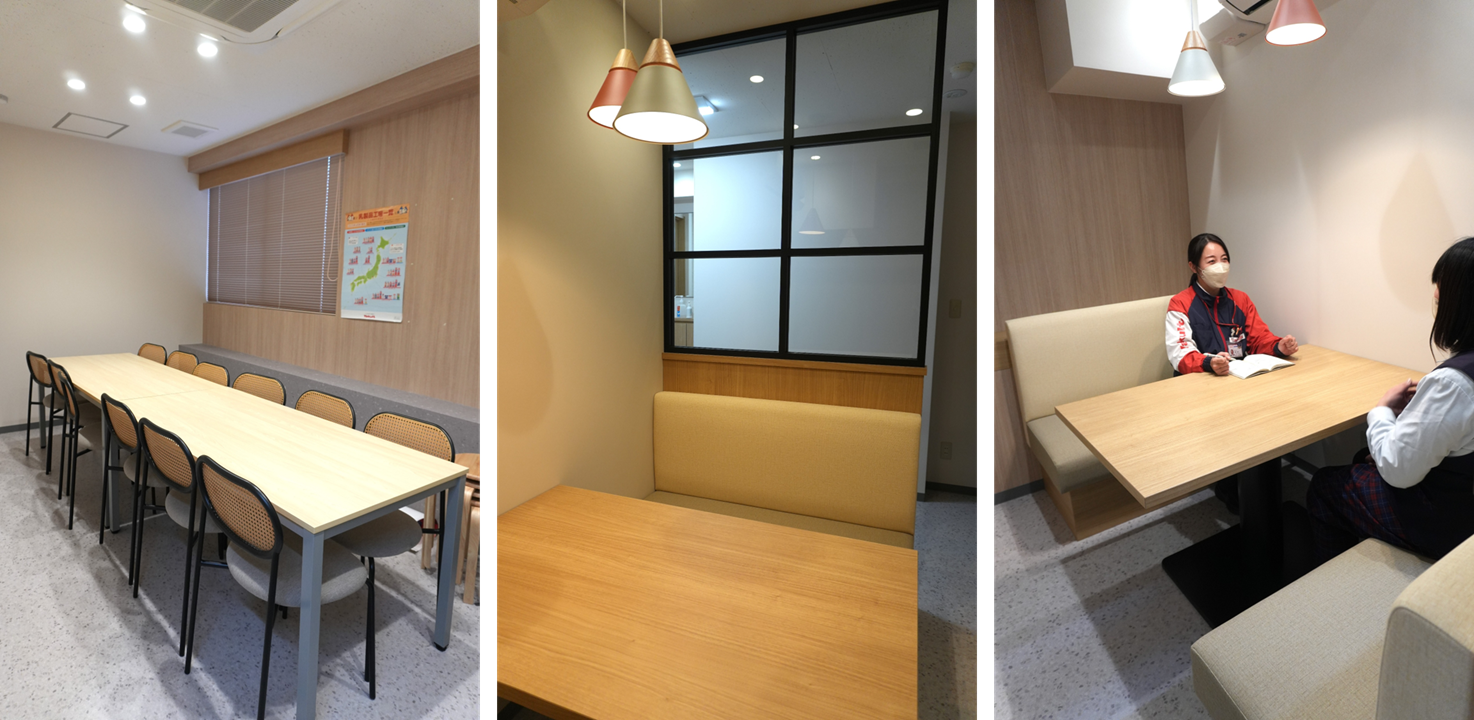「ヤクルト江戸川橋センター」の目指すヤクルトレディの働きやすさ向上をテーマに、オンとオフのスムーズな切り替えや、コミュニケーションが生まれる空間デザインを施しました。