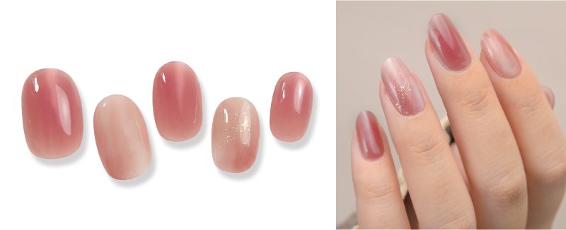 じゅわっと透け感のあるピンクのニュアンスが、女性らしさを演出するデザイン。指先に血色感をプラスしてくれるピンクブラウンネイル。
