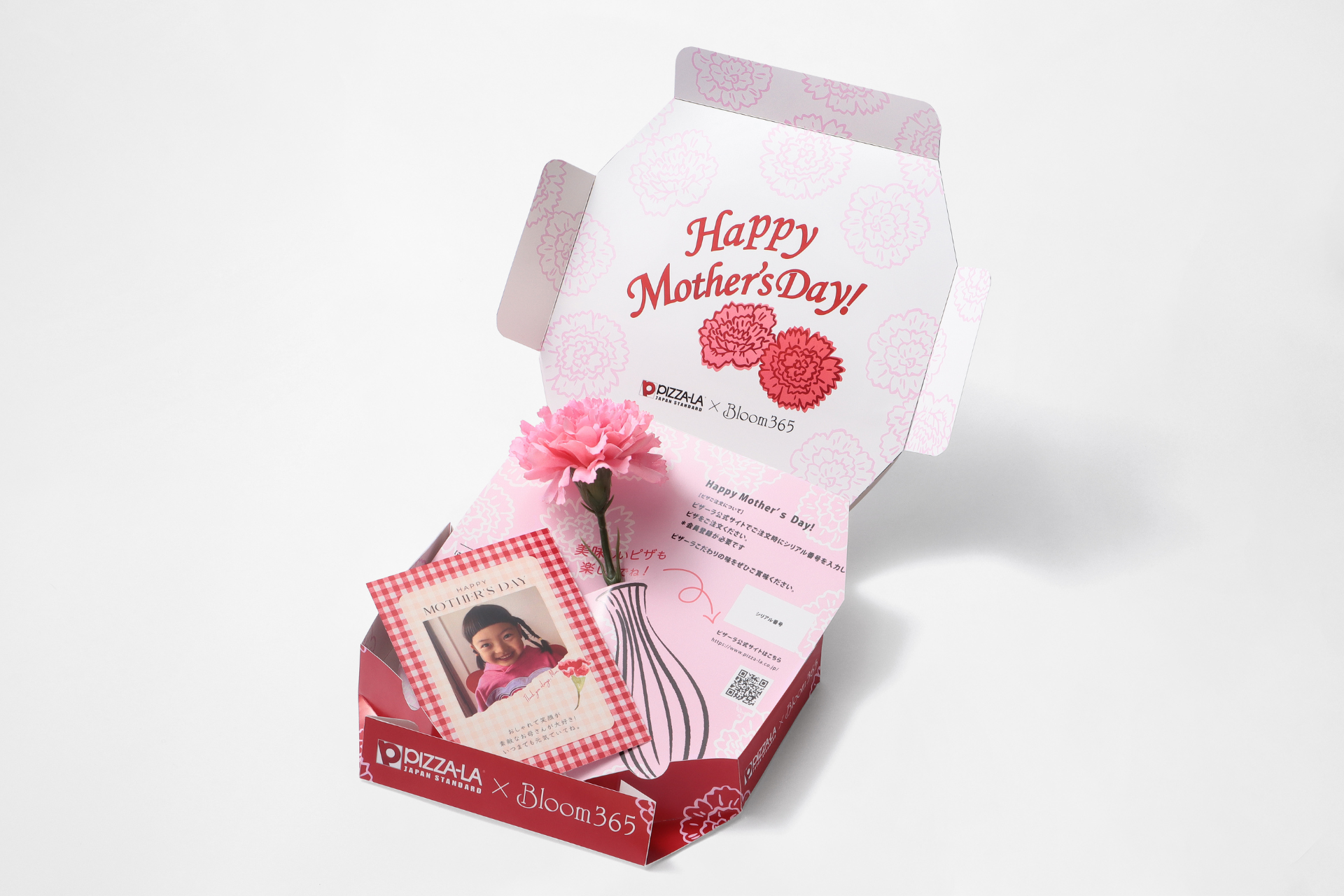 そこで、家族で食卓を囲む時間を届ける「PIZZA-LA」のピザと、感謝の気持ちを象徴するカーネーションを組み合わせ、"美味しい時間"と"選べる楽しさ"をあわせた新しい母の日のギフトとして「Thanks Mom PIZZA-LA」を開発しました。