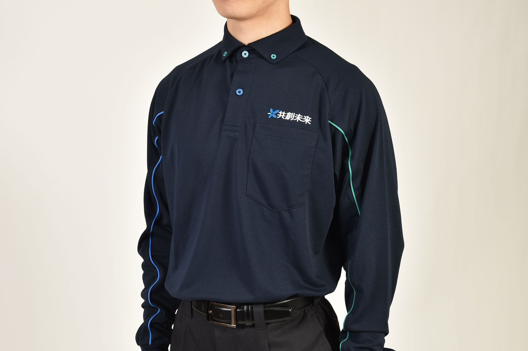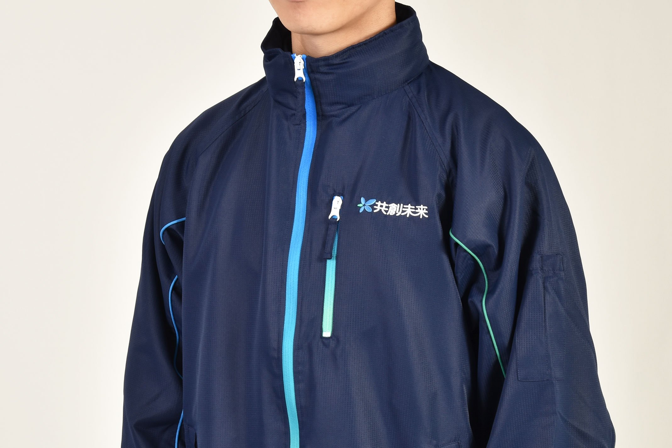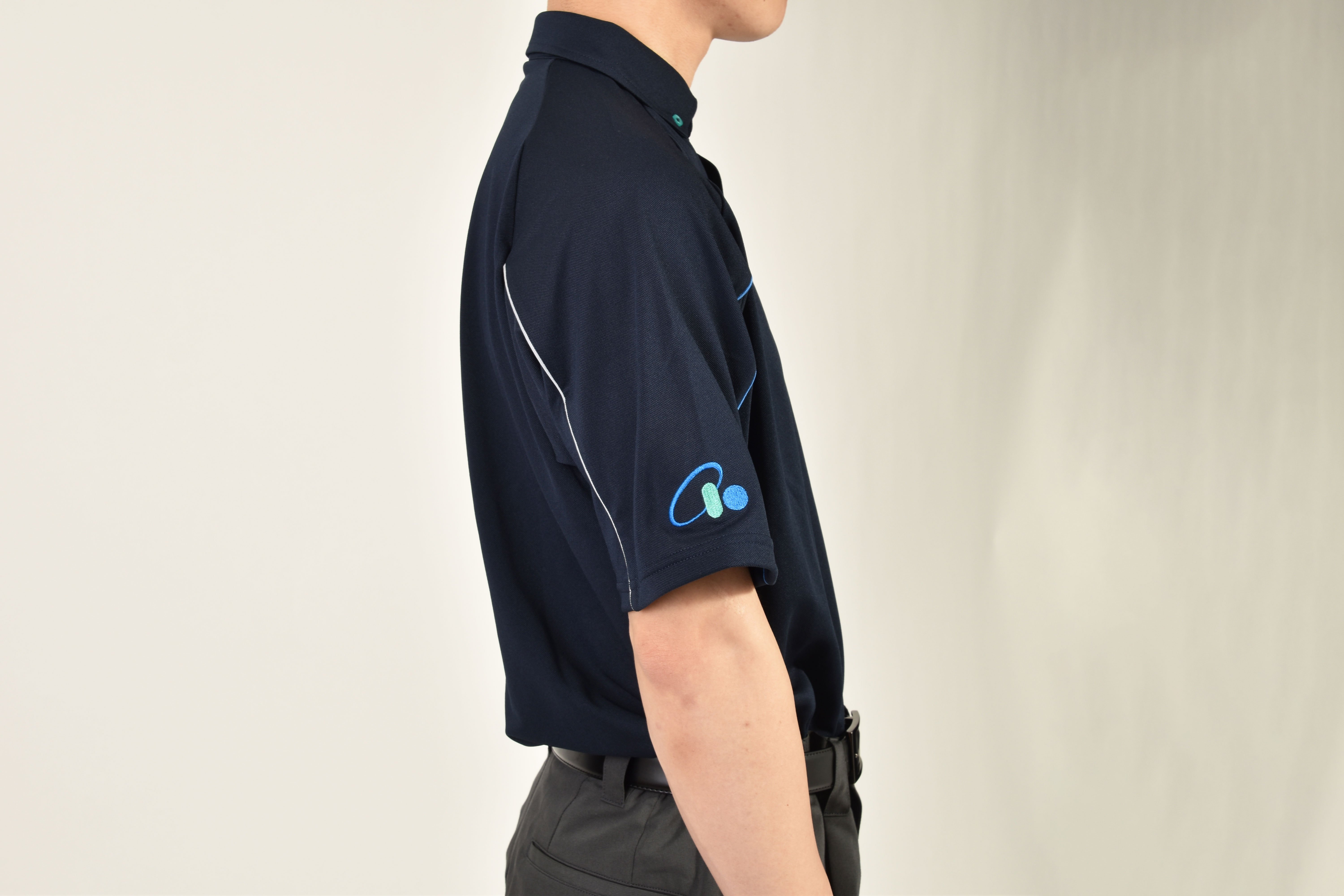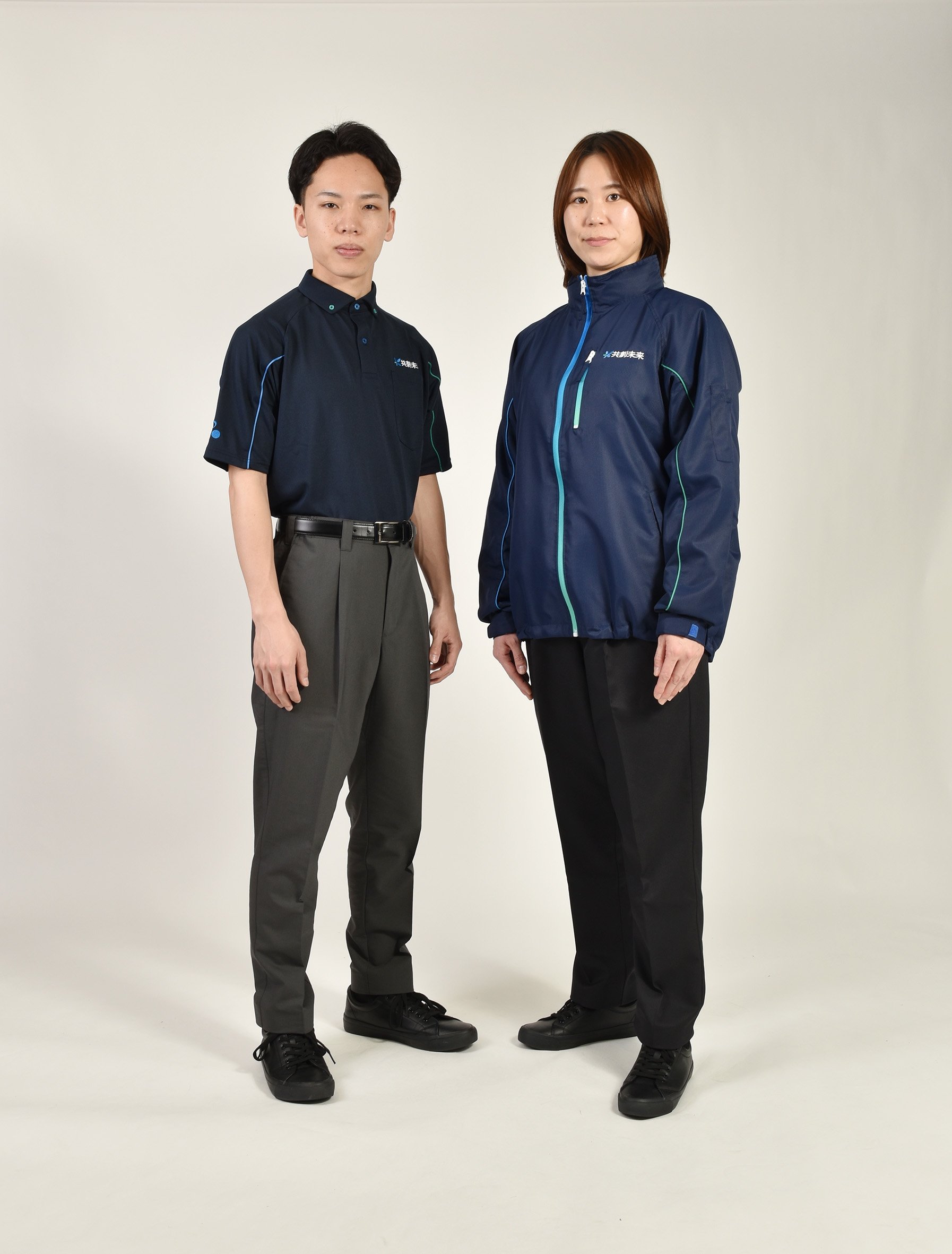 初のユニフォームは、ネイビーを基調にした老若男女問わず着用しやすいデザインです。東邦薬品のコーポレートカラーであるブルーとグリーンのグラデーションファスナーで東邦薬品らしさを表現しています。統一されたデザインで配送先での識別性を高め、ブランドイメージ向上につなげていきます。