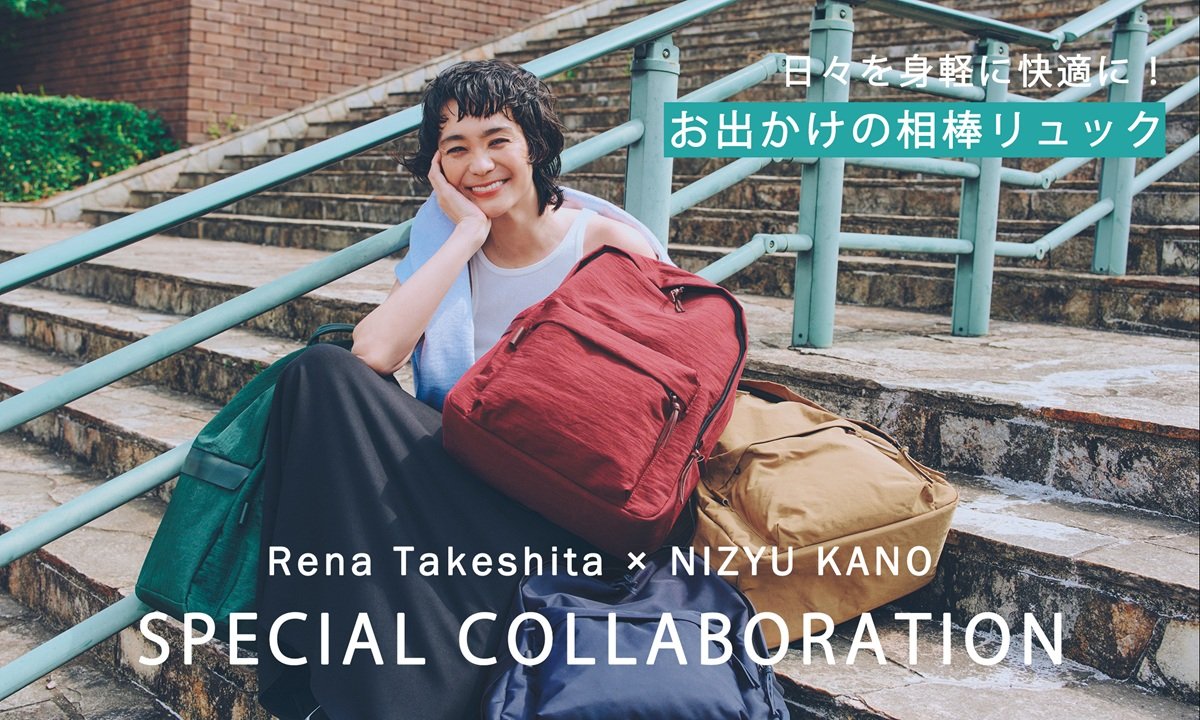 今回のコラボレーションは、モデルの竹下玲奈さんが、ジム通いや1泊旅行などday bagとして使える程よい大きさのリュックを探し続けていた中で、『NIZYU KANO』のモノづくりへの姿勢やバッグの随所に施されたユーザーへの気遣いに共感したことから実現しました。
